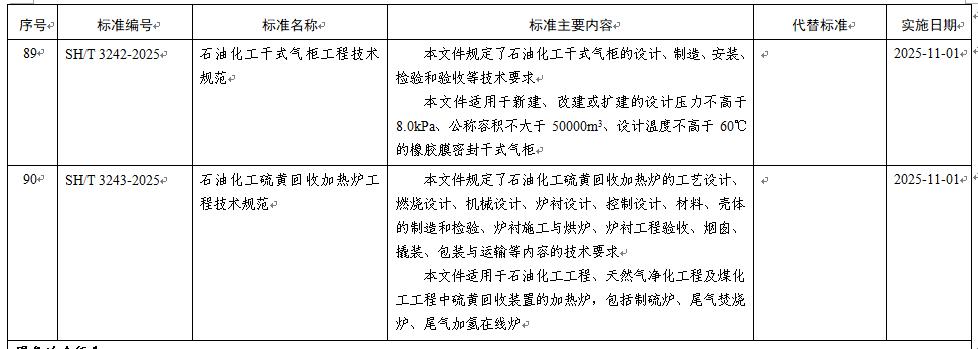 該標準全面且詳細地規定了石油化工硫黃回收加熱爐在多個關鍵方面的技術要求,涵蓋了工藝設計、燃燒設計、機械設計、爐襯設計、控制設計等核心技術環節,以及材料選用、殼體的制造與檢驗、爐襯施工與烘爐、爐襯工程驗收、煙囪建設、撬裝、包裝與運輸等全流程各環節的內容,為石油化工工程、天然氣凈化工程及煤化工工程中硫黃回收裝置的加熱爐設計、施工及驗收提供了全方位、標準化的技術指導和規范依據。